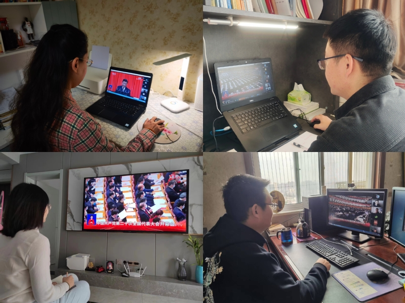 2022年10月16日上午,举世瞩目的中国共产党第二十次全国代表大会在北京人民大会堂隆重开幕。公司党总支专门发布了收看中国共产党第二十次全国代表大会的通知,积极组织驻校老师在S206集中收看,校外教职员工统一在腾讯会议线上同步收看。在校员工由班主任辅导员老师组织,着校服前往教室集中观看中国共产党第二十次全国代表大会开幕会,同时也要求暂缓返校、隔离员工、岗位实习员工进行了线上同步观会。在收看直播过程中,德信体育官网师生聚睛会神聆听,认真做好笔记,并在习近平总书记报告中还不时报以热烈的掌声。