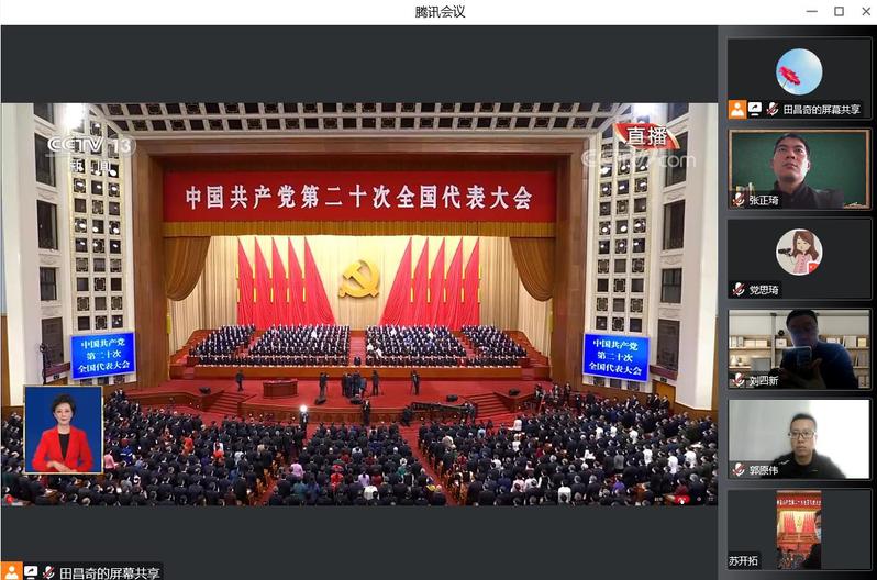 2022年10月16日上午,安全教研室全体党员和教师通过腾讯会议共同观看中国共产党第二十次全国代表大会,这次大会是在全党全国各族人民迈上全面建设社会主义现代化国家新征程、向第二个百年奋斗目标进军的关键时刻召开的一次十分重要的大会。与会党员教师认真学习党的二十大精神,纷纷表态生逢盛世,肩负重任,定要以昂扬的姿态、饱满的热情、十足的干劲、踔厉奋发,笃力前行,做实做好本职工作,不忘育人初心、勇担树人责任。(李璐)