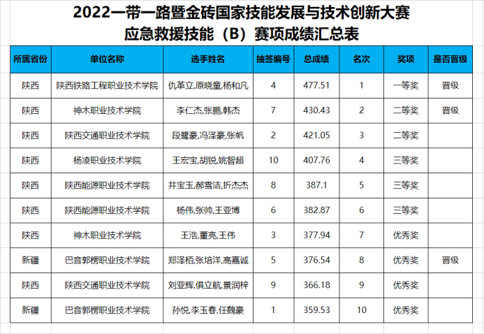 高峰公布西北赛区选手名次