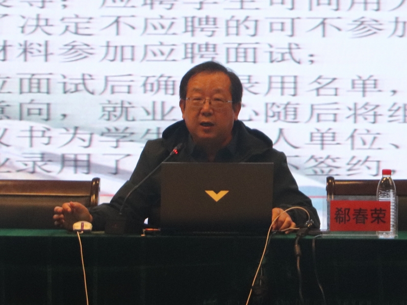 会上,郗春荣书记首先对当前毕业生就业情况和面临的挑战做了分析和阐释,从就业准备、就业信息获取渠道、面试注意事项、就业协议书的签订、违约的界定、跟岗实习的办理要求等方面进行了详细讲解,希望同学们做到以下几点:一是做好规划,要认真考虑适合自己的就业方向,避免盲目选择和从众心理,结合自身实际寻找适合自己的工作。二是认真调研,要锻炼独立思考和自主解决问题的能力,主动去调查研究,主动去寻求帮助,主动去解决问题。三是提升能力,要不断努力,杜绝躺平,多参加社会实践等,提升自己的综合能力。四是发挥优势,善于发现自身优势,发挥自身所长,增强自信心。五是惜时如金,抓住在校期间的学习、生活时光,为今后的工作和生活打下坚实的基础。郗春荣书记要求各班近期积极开展以“成才观、职业观、就业观”为主题的就业育人主题班会和团日活动,通过模拟面试、简历制作“门诊”、优秀毕业生进班宣讲等活动全面提升毕业生的职业认知能力、规划能力。号召广大党员、班团干部要发挥好模范带头作用,到基层、到一线、到祖国需要的地方建功立业,实现人生价值。