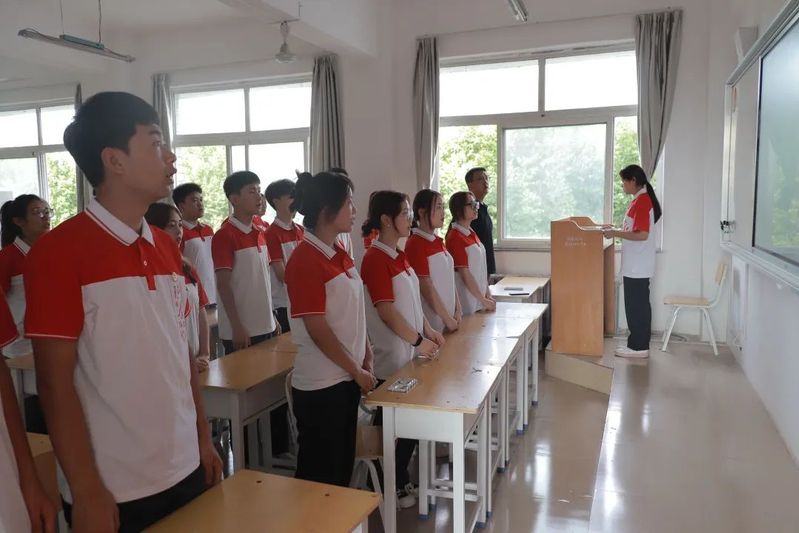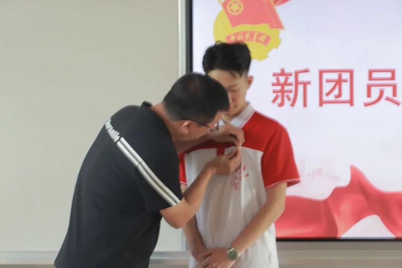 伴随着激昂的国歌,入团仪式正式开始。同学们仪态端庄,精神焕发,以澄澈的歌声唱响对祖国的热爱。仪式第一项,主持人郭联俊宣读了新团员名单并为新团员颁发团员证和佩戴团徽,新团员佩戴崭新的团徽,跟随宣誓人铿锵有力的声音,庄严宣誓。仪式第二项,新老团员代表发言。新团员代表李豪东表达了自己成为一名共青团员的光荣与自豪,他表示自己会不懈奋斗,加强自身理想信念建设,成为党坚定的追随者。老团员代表张艳阐述了作为共青团员应有的担当和义务,激励大家应当肩负责任,努力奉献,为中华民族伟大复兴的中国梦而奋斗。