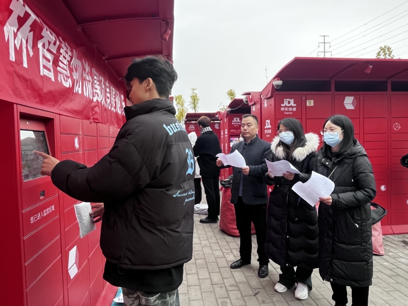 比赛现场,参赛选手们根据任务要求选择物流设备和工具,执行入库货物贴码、上架及货物在库盘点、RFID扫描出库、智能快递柜投放等一系列操作,参赛选手团队合作,默契配合,有条不紊地完成指定任务,现场氛围紧张热烈。