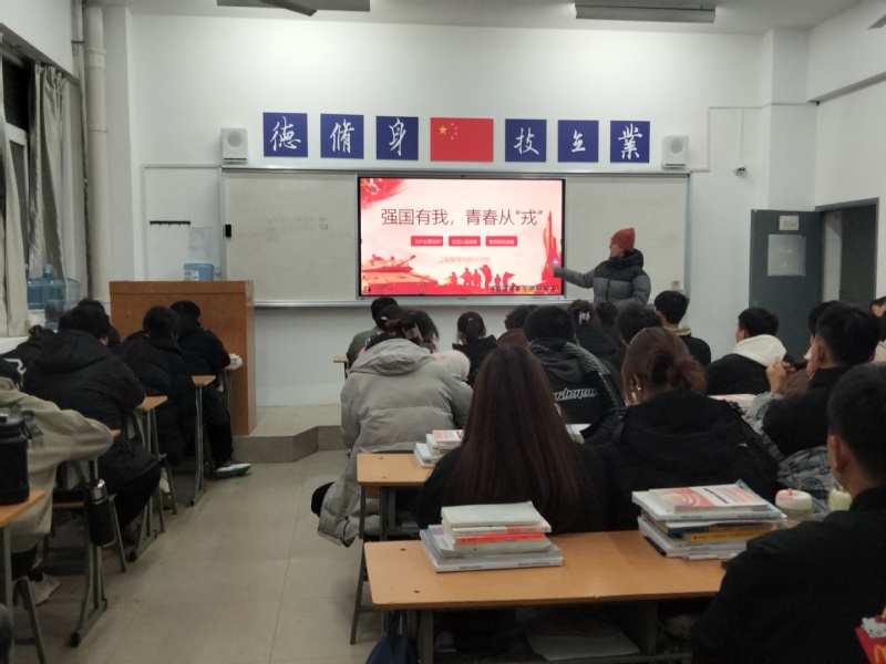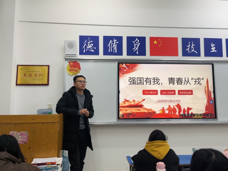 强国有我,青春从“戎”。为进一步做好应征入伍政策宣传,有效激发青年老员工参军入伍的积极性,推动国防和军队现代化建设。2023年12月11日晚,德信体育官网2022级、2023级各班主任、辅导员深入班级召开强国有我,青春从“戎”应征入伍政策宣传主题班会。