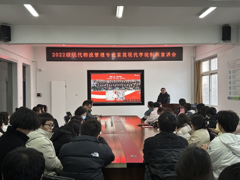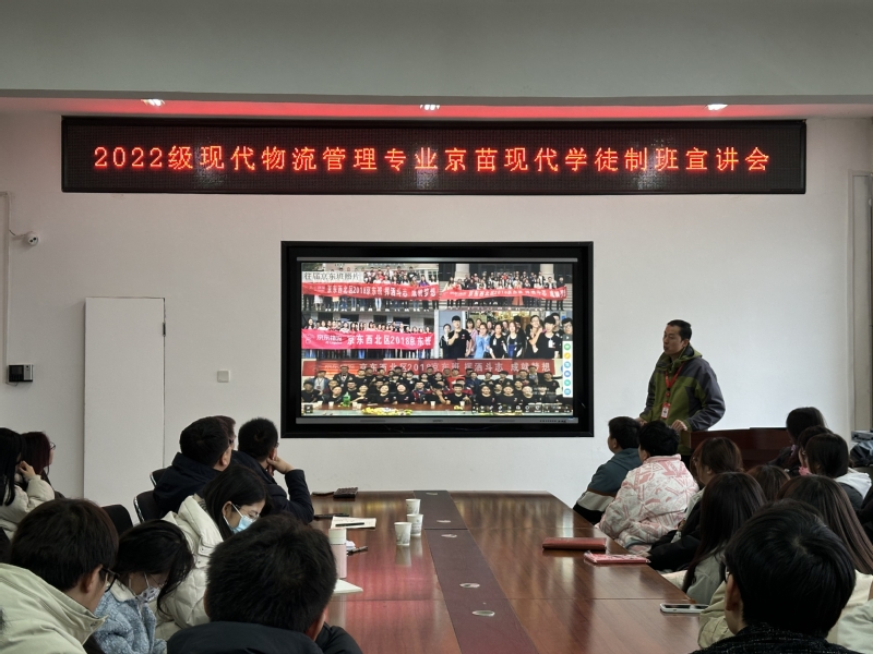 12月27日下午,陕西京东信成供应链科技有限公司校企合作经理来校向2022级现代物流管理专业员工宣讲京东京苗计划。德信体育官网副经理贾良、实践教学科科长田昌奇以及物流教研室相关教师参加宣讲会。白光泽经理通过宣传视频和实景图片,从公司简介、职业发展、薪酬福利等方面对京东的企业文化、发展历程、发展规模、人才需求与培养模式等作了详细介绍,展示了京东公司为员工提供的良好发展平台。描绘了加入京苗计划给人生发展带来的无限可能。贾经理结合现代学徒制的优势,全面分析了当前的就业形势,鼓励现代物流等财经商贸类专业员工积极加入京苗计划,改变非“公”不入、非“铁”不进的传统观念,通过京东等大型民营企业的广阔舞台实现人生价值。