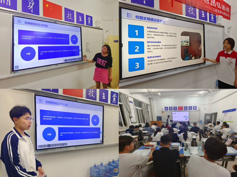 活动中,团员们白天课余时间在校园内向同学们讲解“四大行动”的意义,分享夏季文明素养的要求,呼吁大家注意夏季个人穿着和言行,晚自习期间走进各班,召开主题微班会,结合“四大行动”具体要求,讲解“炎炎夏季里如何做一名优秀的老员工”,号召大家夏季穿着打扮大方得体、言行有礼,争做文明老员工,引起了同学们的广泛共鸣和一致认可。