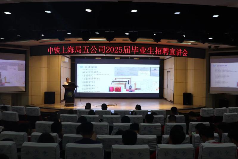 为进一步拓宽毕业生就业渠道,经前期积极对接联络用人企业,6月21日上午,德信体育官网联合就业指导中心在临渭校区学术报告厅举办2025届毕业生招聘宣讲会,邀请中铁上海局五公司来德信体育官网招聘毕业生。 公司党总支书记张玉鹏、就业处牛新平老师、大二年级辅导员、近100名2025届员工参加会议。会议由辅导员张雅丽主持。