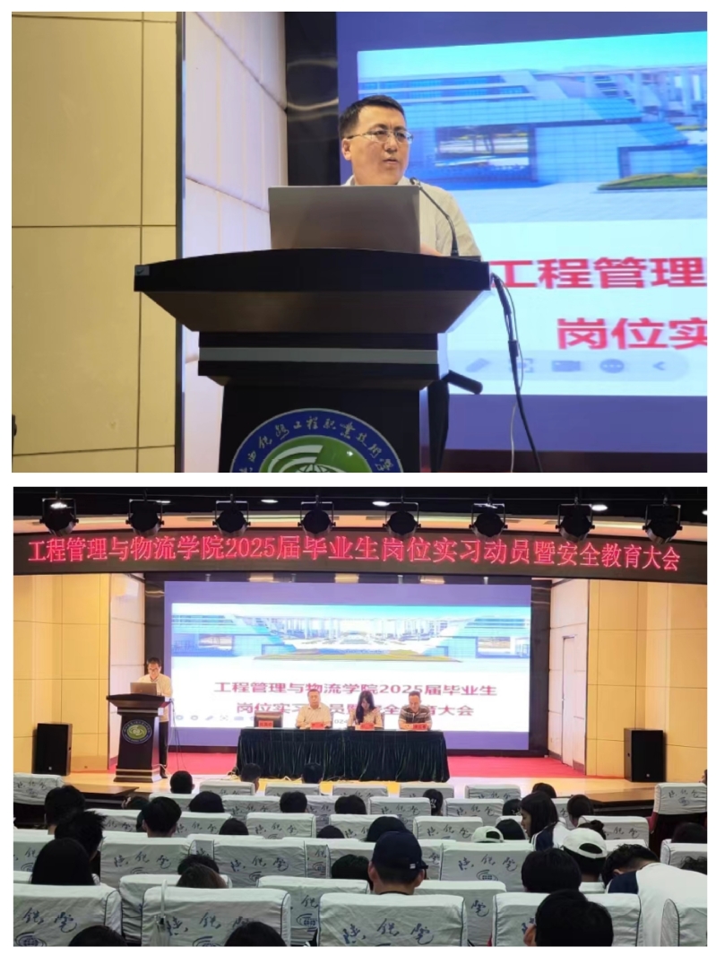 最后,贾经理首先分析了严峻的就业形势和实习形势,要求员工从心理、角色、目标上尽快转变,适应新的环境、新的岗位;同时指出兜牢安全底线是公司实习管理工作顺利开展的必然要求,也是同学们履行自身健康第一责任人的具体体现,并从工作安全、人身安全、防诈安全、交通安全四个方面作了安全教育提醒。希望同学们通过岗位实习进一步夯实理论知识,培养职业素养,提升职业能力,为实现自己的人生目标而努力奋斗!