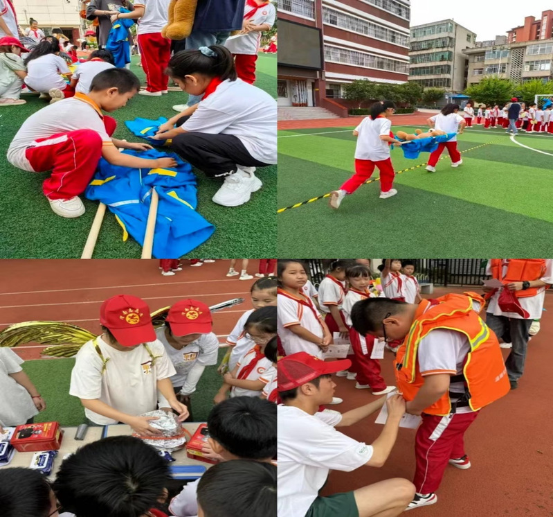 活动现场,安全党支部的老师们及57名员工志愿者提供志愿服务,向育红小学200余名员工传授了火灾逃生自救、伤口包扎、安全带、救生衣使用等相关安全专业知识。此次活动采用“地图打卡”的形式进行,活动现场设置了“伤员转运、速速灭火、摸石过河、逃离火兽、逃离水怪兽、速速下降、快速包扎、瓶口结、安全飞行棋、手忙脚乱、有问有答、嘉年华画室、智力拼图”十三个游戏项目。活动中,安全党支部的老师们在多项活动中为小朋友们进行安全指导,鼓励小朋友们积极参与活动,勇敢尝试,让他们在游戏中既感受到了学习的乐趣,也能够轻松学会如何正确面对生活中的各种安全挑战,掌握安全技能。