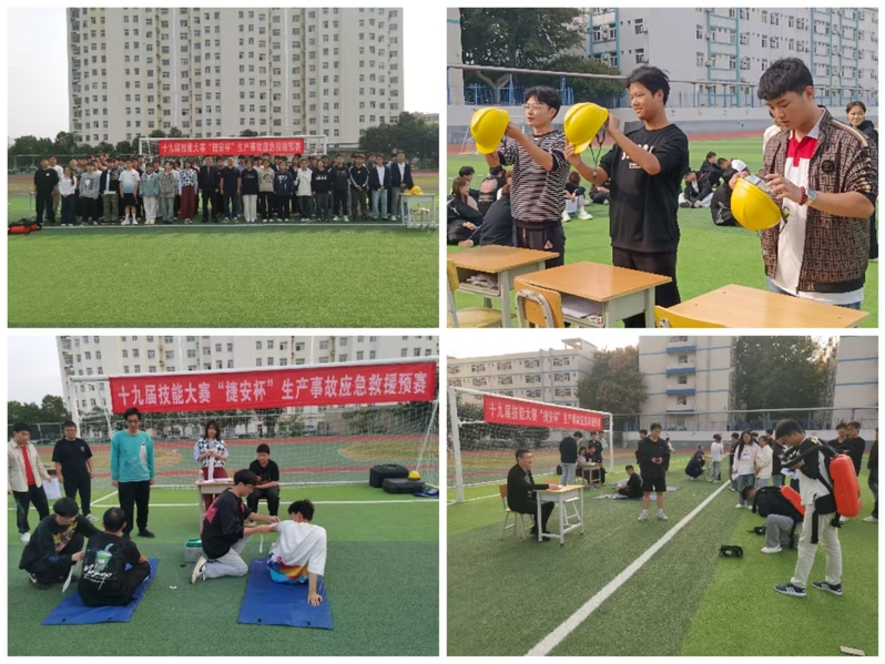 10月16日下午14:00-18:00,第十九届技能大赛“捷安杯”生产事故应急救援赛项预赛在临渭校区足球场和高新校区C3实训楼4楼416室两校区同时举办,来自全校两个校区58个团队共计232名员工报名参加。本赛项对接国家级技能大赛-生产事故应急救援赛项,采取现场实操的比赛形式,严格按照比赛要求执行,赛项分为预赛和决赛。本次预赛包含三个考核项目,分别为安全帽正确佩戴、小臂止血包扎(上臂止血+小臂包扎)、正压氧气呼吸器正确穿戴,通过比赛能够使员工巩固安全知识,增强安全意识,提升安全技能,达到较好的预期效果。(宝坤)