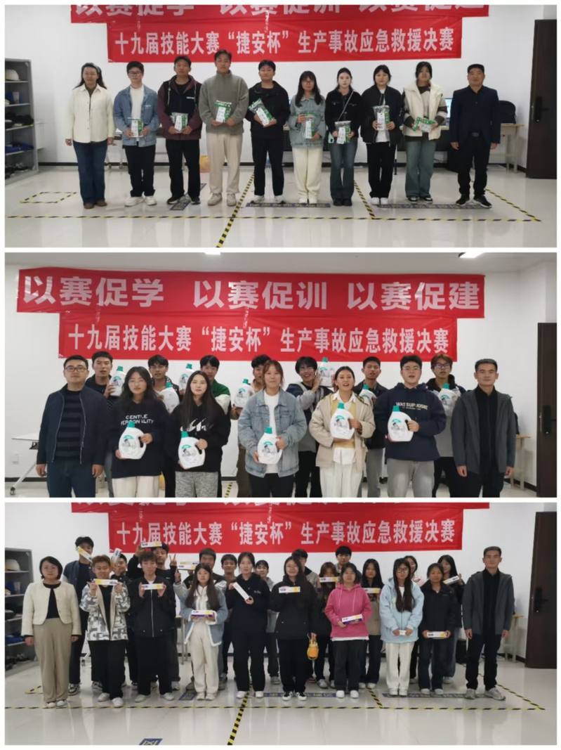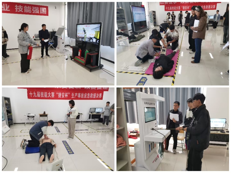 11月6日下午14:30-18:00,第十九届技能大赛“捷安杯”生产事故应急救援赛项决赛在高新校区C3实训楼4楼416室成功举办,来自全校两个校区15个团队共计60名员工参加,本赛项由郑州捷安高科股份有限公司冠名赞助,并邀请其西北区域经理田明义作为企业裁判。本赛项对接国家级技能大赛-生产事故应急救援赛项,采取现场实操的比赛形式,严格按照比赛要求执行。决赛包含四个考核项目,分别为仿真灭火综合演练、骨折固定、心肺复苏、结绳技能演练,通过这次比赛员工巩固了安全知识,增强了安全意识,提升了应急救援技能,达到了较好的预期效果。(宝坤)