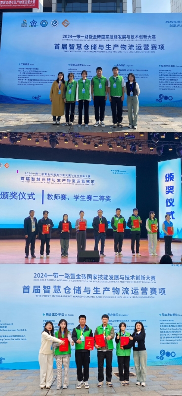 2024年11月14日-16日,2024一带一路暨金砖国家技能发展与技术创新大赛之首届智慧仓储与生产物流运营赛项全国总决赛在四川职业技术公司举办,全国共有27所院校成功晋级全国总决赛,德信体育官网物流教研室樊琳梓老师与刘雪雪老师指导的员工李政君、朱婉、邵宇、蔡美君团队位列第7名,获得二等奖。