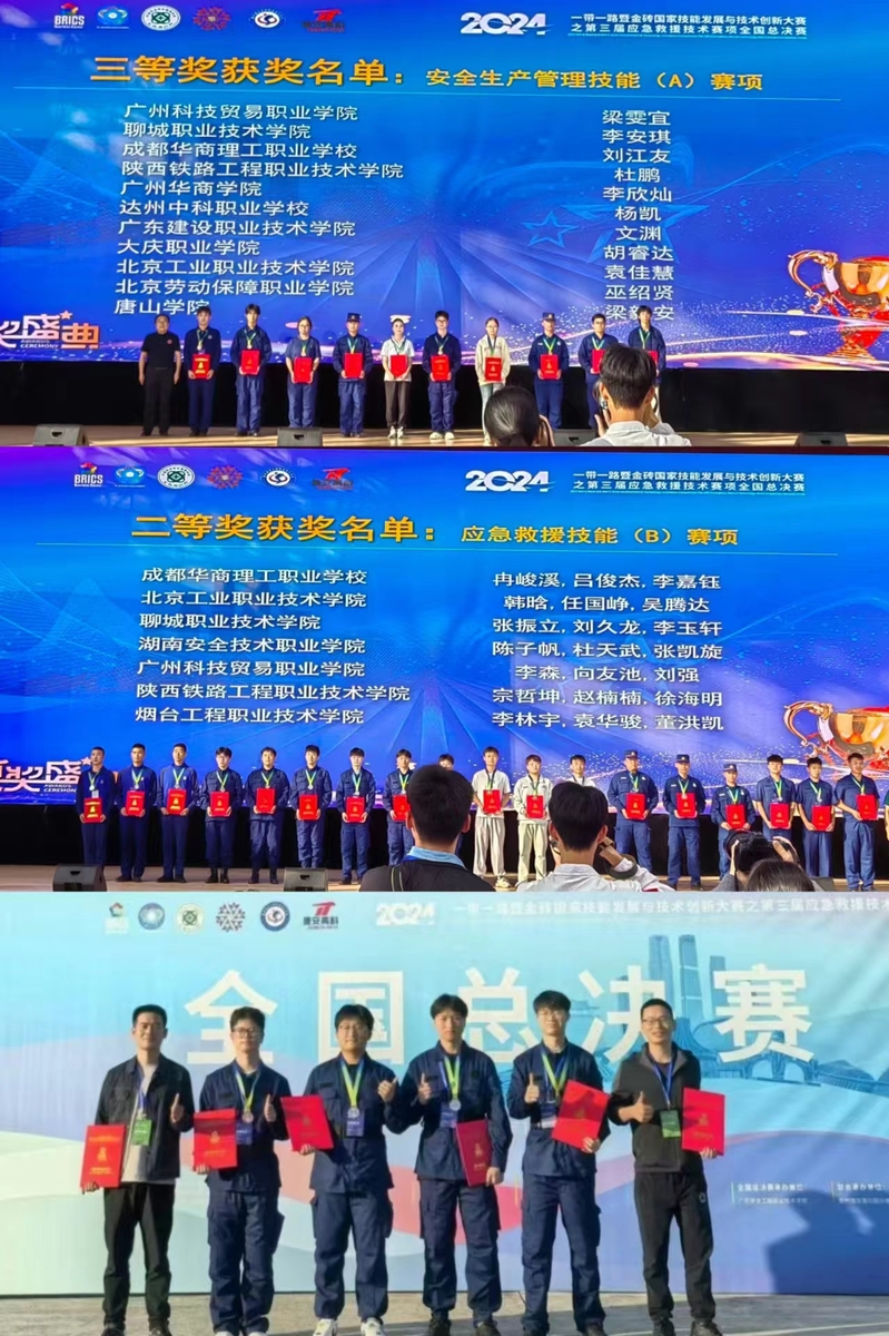 11月18日-22日,2024一带一路暨金砖国家技能发展与技术创新大赛之第三届应急救援技术赛项全国总决赛在广西安全工程职业技术公司举办,全国共有45所院校71支队伍成功晋级全国总决赛,大赛分为安全生产管理技能(A赛项)和应急救援技能(B赛项)两个赛项。德信体育官网安全教研室肖亚军、张正琦两位老师指导的队伍获得A赛项三等奖,B赛项二等奖,两位老师获优秀指导教师称号,德信体育荣获赛事优秀组织奖。