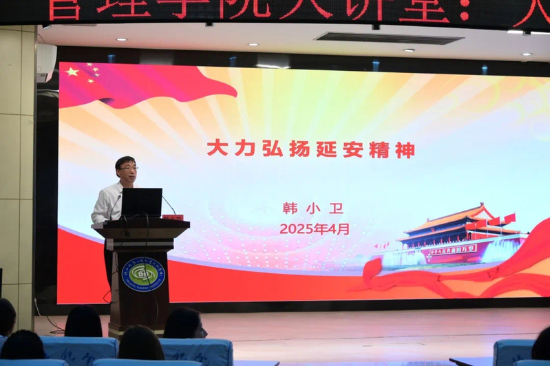 4月22日下午,韩小卫董事长在临渭校区学术报告厅为德信体育官网员工党员及积极分子讲《大力弘扬延安精神》主题党课。