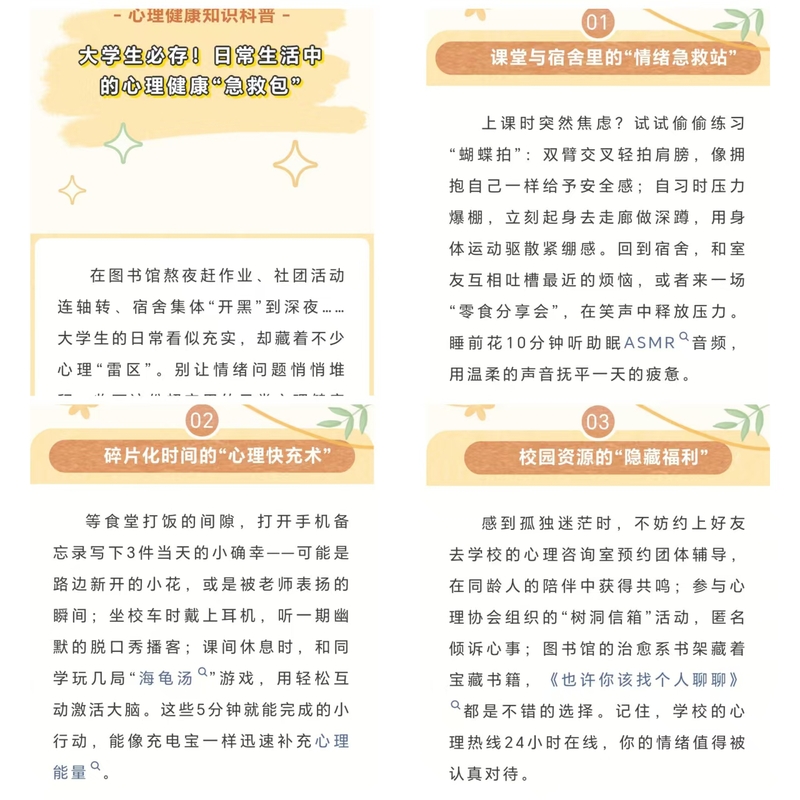 为进一步提升员工心理健康素养,增强心理调适能力,营造积极向上的校园文化氛围,5月17日德信体育官网精心策划并开展了心理健康知识微信推文活动。此次活动以线上传播为载体,通过丰富多元的内容形式,为全院师生带来了一场别开生面的心理健康知识盛宴。活动期间,德信体育官网官方微信公众号推出一系列高质量的心理健康知识推文。这些推文打破传统说教模式,采用趣味形式、真实案例分析、互动问答等形式,将晦涩的心理学知识转化为通俗易懂的内容。
