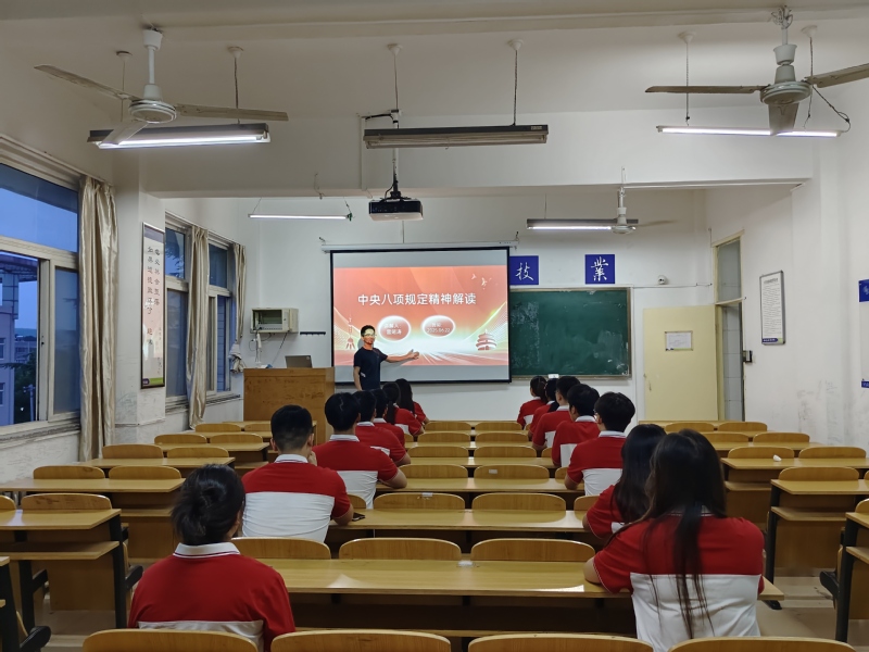 课上,雷老师从中央八项规定出台的背景、重要意义入手,解读了中央八项规定的具体内容。雷老师讲到,中央八项规定是长期有效的铁规矩、硬杠杠,全体党员干部要提高政治站位,必须时刻保持清醒头脑,自觉抵制各种诱惑。